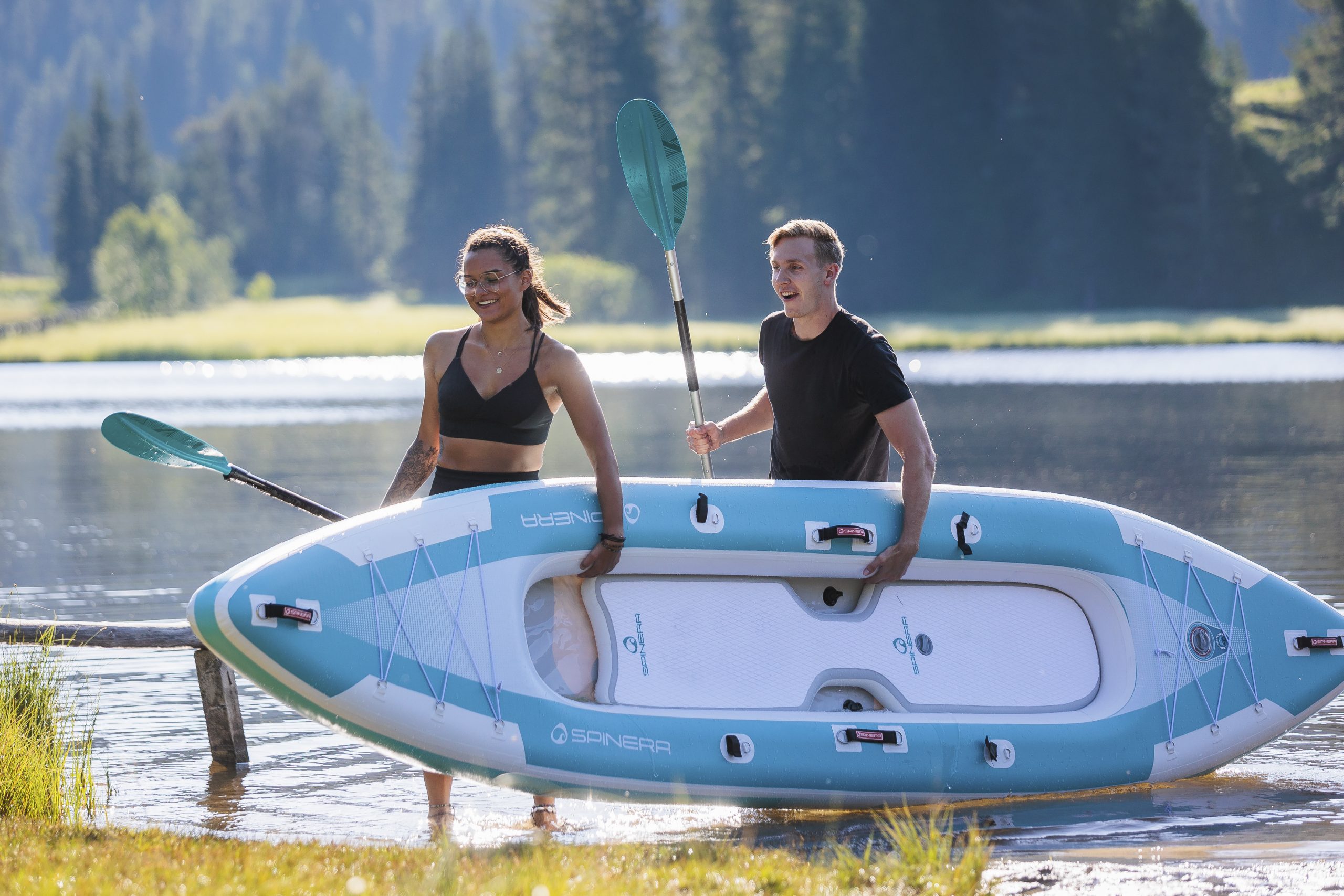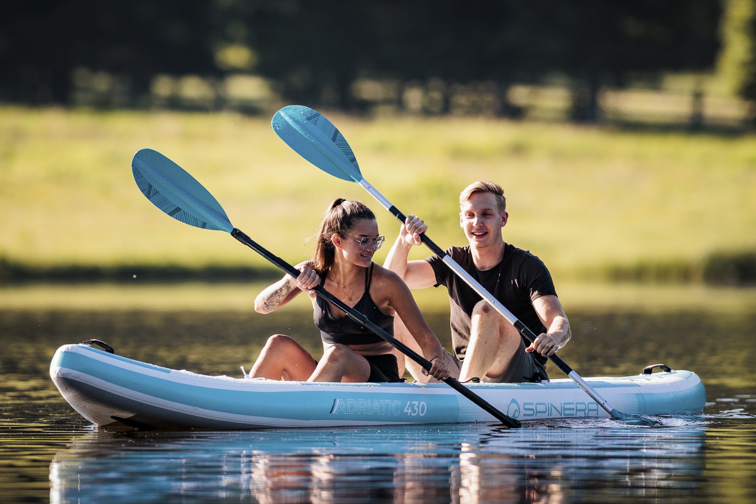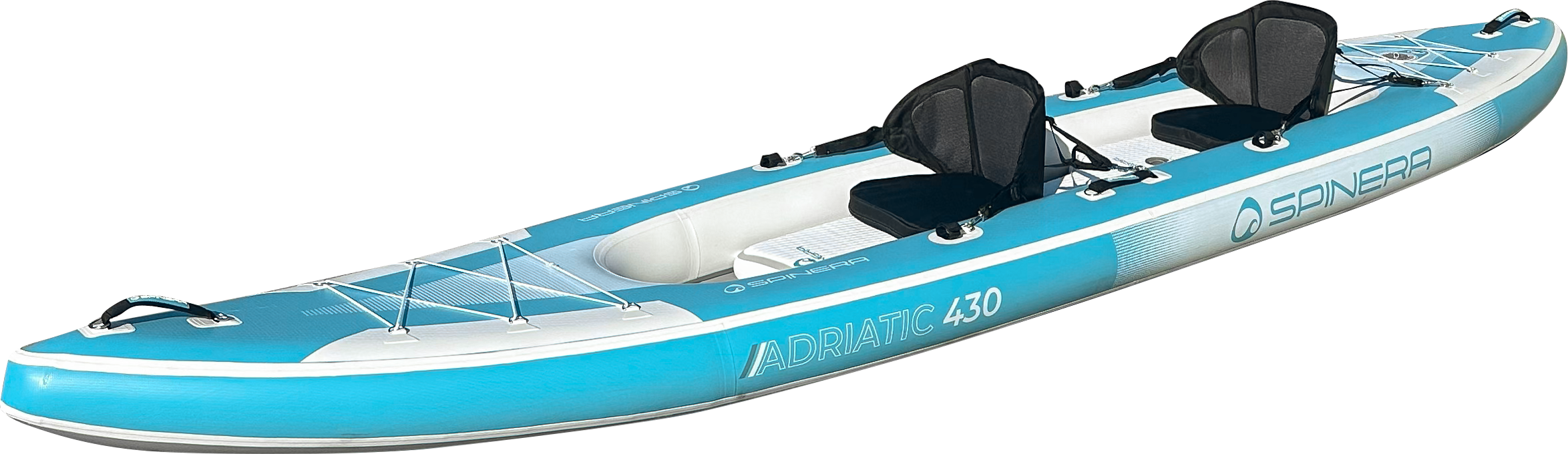 Das Spinera Kayak Adriatic 430 Light ist ein leichtes, aufblasbares Kajak für Freizeit- und Abenteuertouren auf dem Wasser. Mit einer Größe von 426,5 × 92,5 × 20 cm und einer maximalen Traglast von 220 kg bietet es viel Platz und Stabilität.