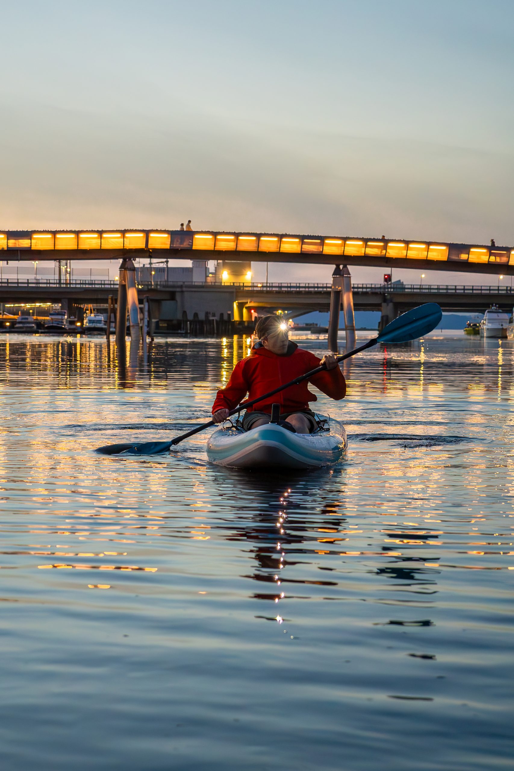 Das Doppelkammer-System in Kombination mit der 20 cm DL ULT Dropstitch-Technologie sowie dem verstärkten HDDS-Boden sorgt für eine robuste und sichere Konstruktion. Trotz seiner Stabilität wiegt das Kajak nur 14,1 kg und lässt sich dank des kompakten Packmaßes einfach transportieren und verstauen.